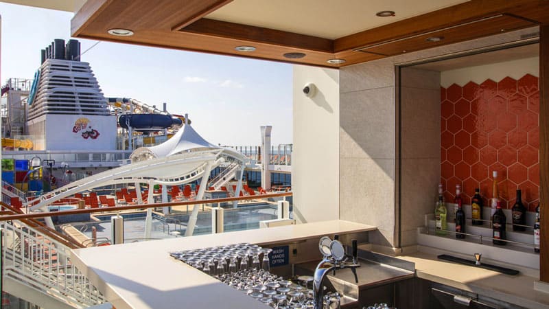 露天池畔吧,讓賓客在暢遊的同時盡享各式飲品。除雞尾酒、啤酒外,更有無酒精雞尾酒、果汁和汽水等豐富選擇。